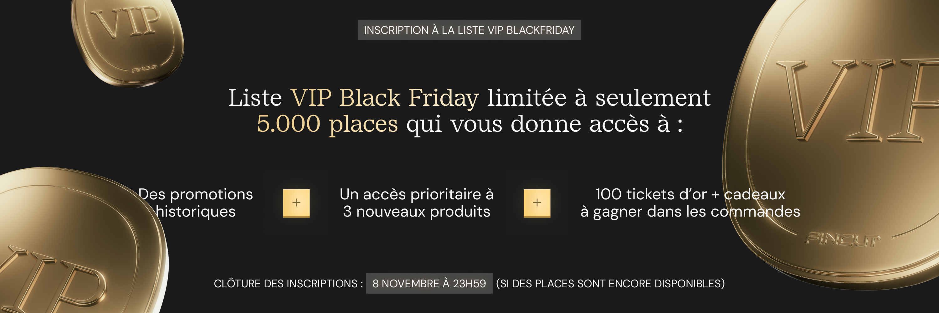 Inscrivez-vous avant le 9 novembre pour accéder à des avantages exclusifs : cadeaux, accès prioritaires, promos inédites… et 100 tickets d’or à gagner, soit 1 an de Fincut offert.